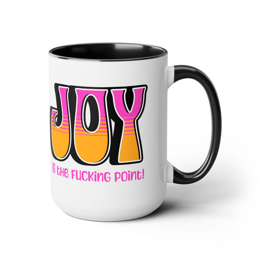 Black Pink Orange Joy Two-Tone Mug, 15oz