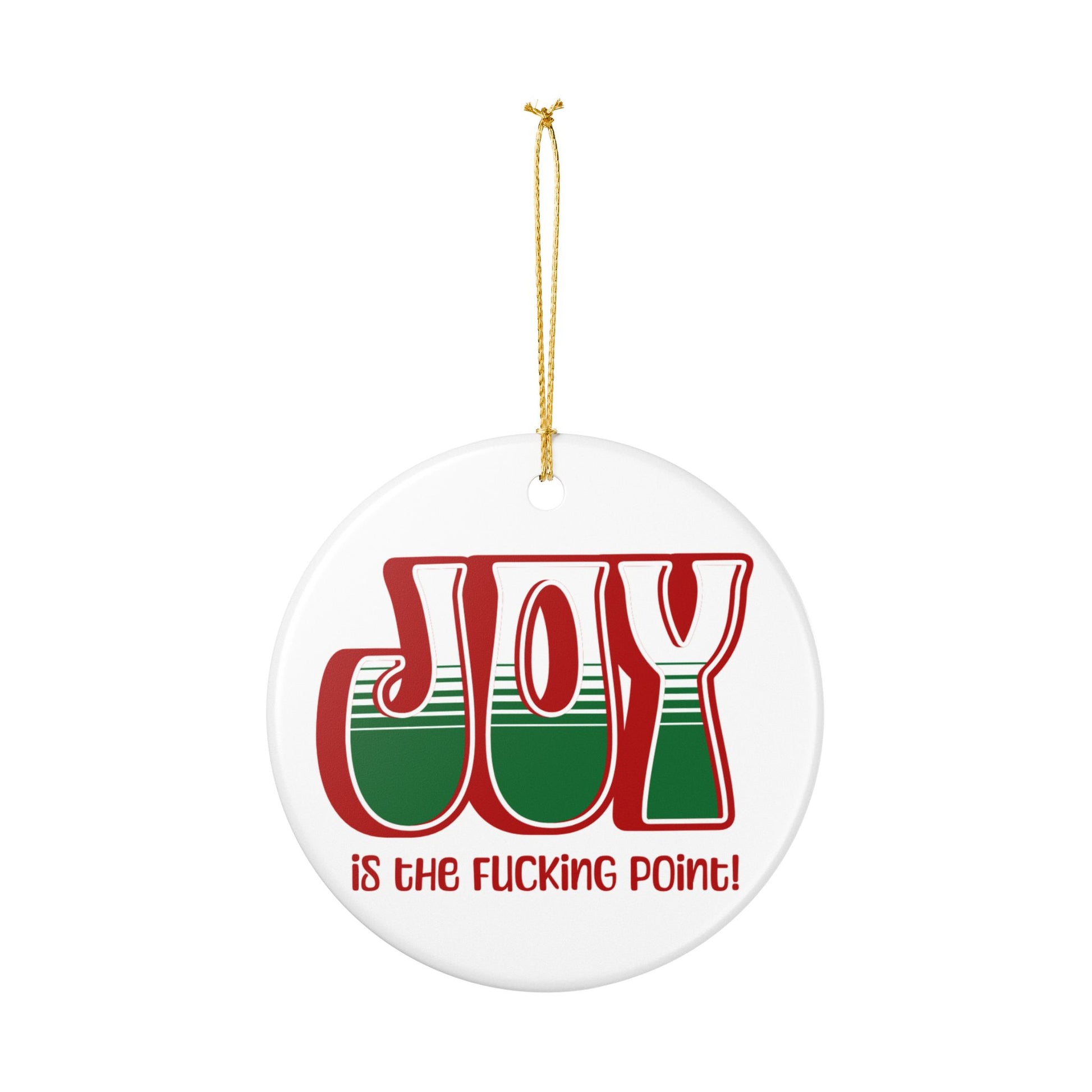 Red Holiday Joy Ceramic Ornament, (explicit)