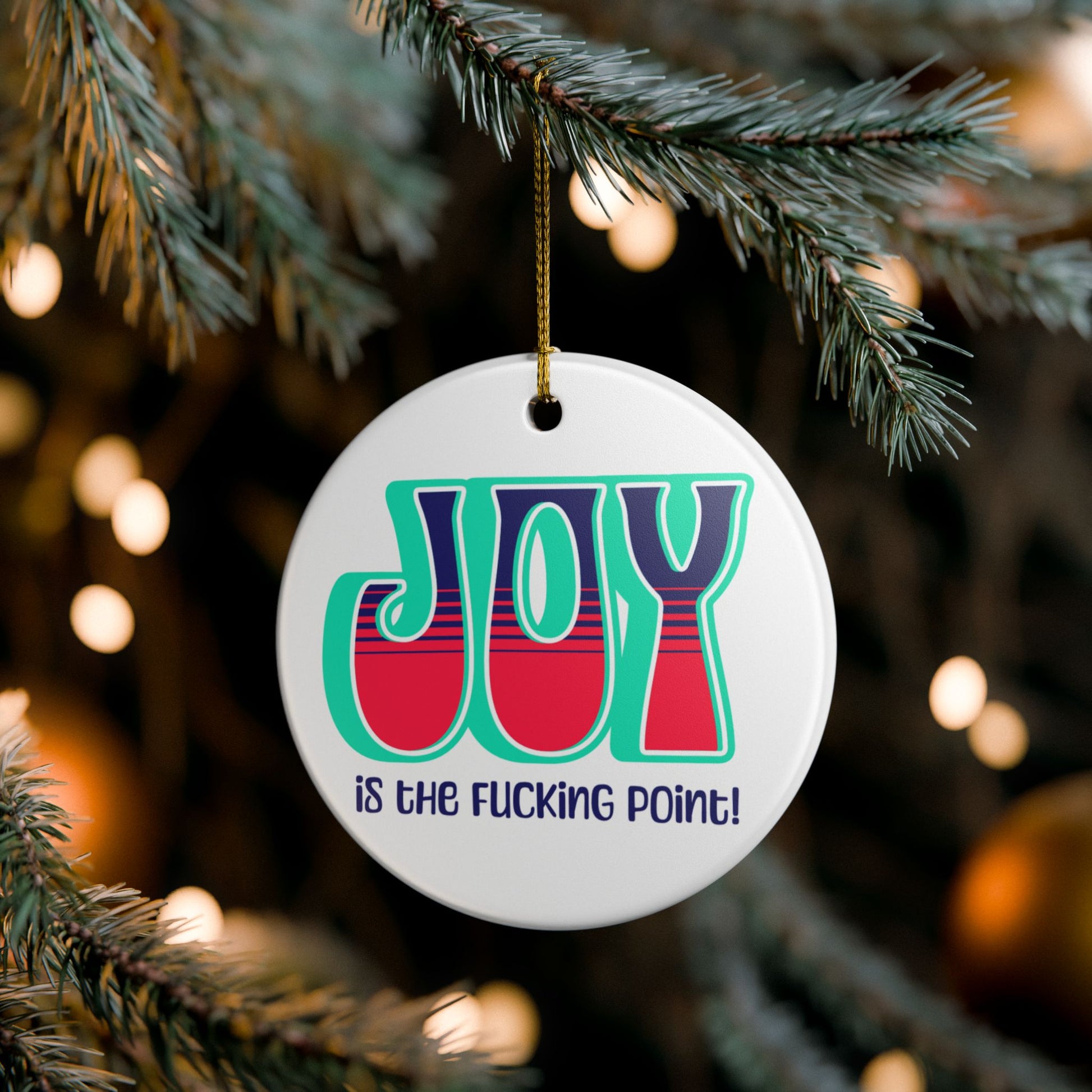Teal Blue Red Joy Ceramic Ornament, (explicit)